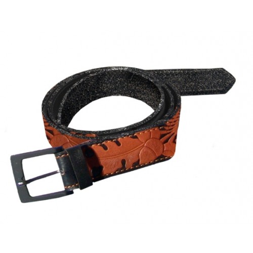 Двухслойный ремень с подстрочкой из натуральной кожи, с ручной подкраской.