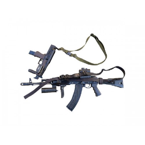 Этот ремень используется совместно с автоматами, пистолетами-пулеметами и гладкоствольным оружием полуавтоматического типа. Он в корне отличается от классических трехточечных ремней – ведь у него нет стропы. Вместо этого имеются две детали: лента подтяга и основной обхват, соединенный в кольцо и охватывающий корпус стрелка. У него имеется трехщелевая пряжка – через нее проходит лента подтяга, прикрепленная к передней антабке. Конец ленты, выступающий из пряжки, служит для перемещения точки подвеса.