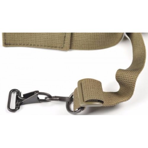Этот ремень используется совместно с автоматами, пистолетами-пулеметами и гладкоствольным оружием полуавтоматического типа. Он в корне отличается от классических трехточечных ремней – ведь у него нет стропы. Вместо этого имеются две детали: лента подтяга и основной обхват, соединенный в кольцо и охватывающий корпус стрелка. У него имеется трехщелевая пряжка – через нее проходит лента подтяга, прикрепленная к передней антабке. Конец ленты, выступающий из пряжки, служит для перемещения точки подвеса.
