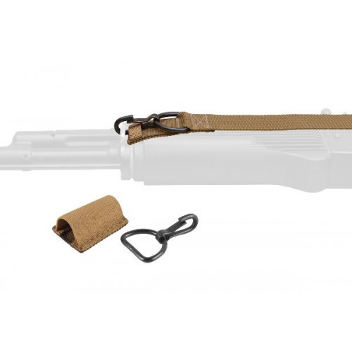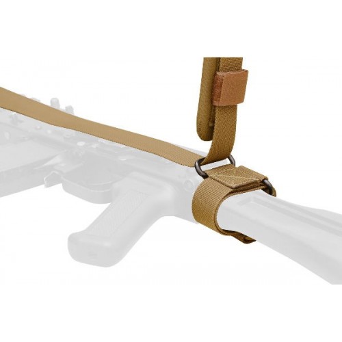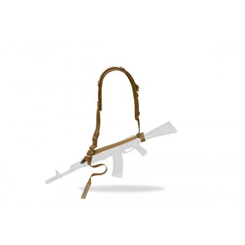 Этот ремень используется совместно с автоматами, пистолетами-пулеметами и гладкоствольным оружием полуавтоматического типа. Он в корне отличается от классических трехточечных ремней – ведь у него нет стропы. Вместо этого имеются две детали: лента подтяга и основной обхват, соединенный в кольцо и охватывающий корпус стрелка. У него имеется трехщелевая пряжка – через нее проходит лента подтяга, прикрепленная к передней антабке. Конец ленты, выступающий из пряжки, служит для перемещения точки подвеса.