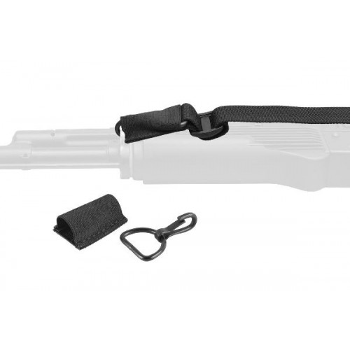 Этот ремень используется совместно с автоматами, пистолетами-пулеметами и гладкоствольным оружием полуавтоматического типа. Он в корне отличается от классических трехточечных ремней – ведь у него нет стропы. Вместо этого имеются две детали: лента подтяга и основной обхват, соединенный в кольцо и охватывающий корпус стрелка. У него имеется трехщелевая пряжка – через нее проходит лента подтяга, прикрепленная к передней антабке. Конец ленты, выступающий из пряжки, служит для перемещения точки подвеса.