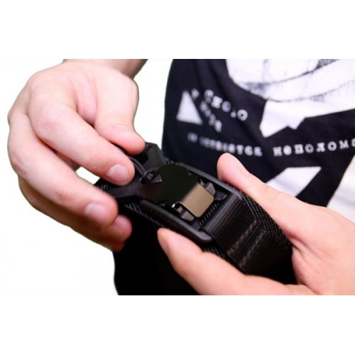 Поперечная жёсткость стропы позволяет навешивать различные аксессуары так же, как на кожаный или тактический ремень.