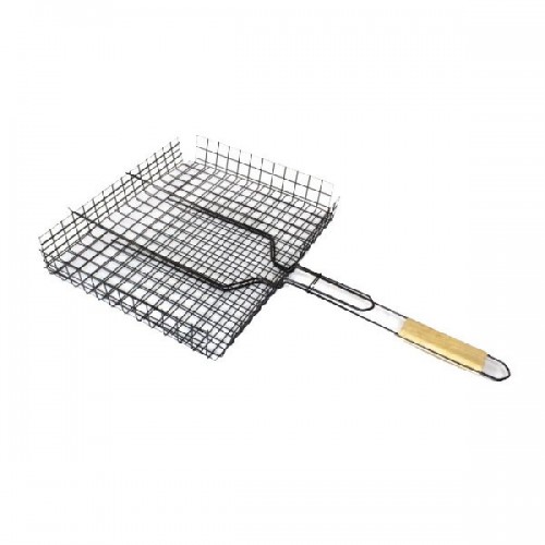 Решетка для барбекю предназначена для приготовления рыбы и мяса. Изделие выполнено из нержавеющей стали, удобная ручка выполнена из дерева. Форма решетки позволяет готовить блюда с помощью обработки дымом без прямого контакта с огнём. Благодаря термической обработке такие блюда являются наиболее полезными, так как жир для их приготовления не требуется. Продукты сохраняют все свои полезные свойства и вкусовые качества.