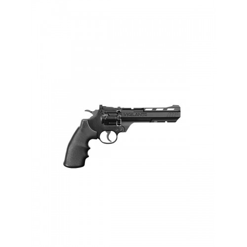 Crosman Vigilante - современный 6-ти дюймовый пневматический револьвер от компании Crosman. От своего предшественника Crosman 357-6 отличается привлекательным угловатым прицелом и наличием двух салазок Пикатинни, под и над стволом. Ствол Vigilante длиной 15 см, нарезной. В комплекте два барабана: под стальные шарики (6-ти зарядный) и свинцовые пули (10-ти зарядный). При стрельбе свинцовой пулей револьвер показывает среднюю скорость 133 м/с, шариками 142 м/с, что более чем достаточно для точной стрельбы на дистанции 10-15 метров. УСМ двойного действия, то есть стрельба ведется как самовзводом, так и с предварительным взводом курка. Регулируемый в двух плоскостях «целик». Рамка, УСМ, ствол изготовлены из металла, фальшствол из ударопрочного пластика.
