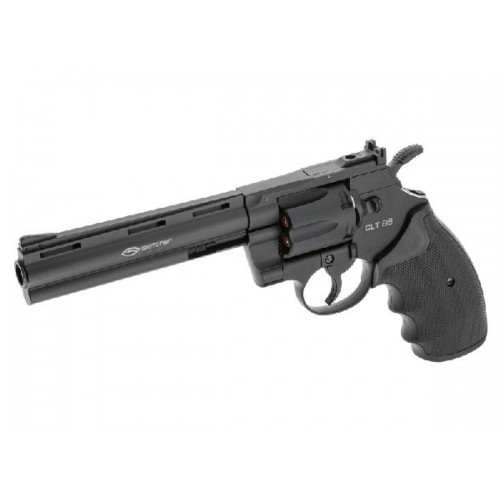Револьвер Gletcher CLT B6 - это пневматическая версия легендарного американского пистолета Colt Python. Удобная широкая рукоятка, возможность стрельбы с предварительным взводом курка, скрытый предохранитель и применение фальшпатронов - вот основные черты этой модели. Баллон с газом вставляется через отверстие в пятке, которое скрыто за поджимным винтом.