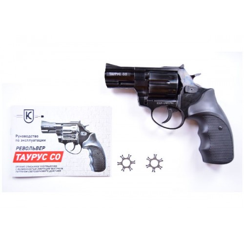 Для снаряжения светошумовыми патронами 10ТК СХП револьвера Taurus-СО используется обойма-звездочка, рассчитанная на 6 боеприпасов. Благодаря экстрактору гильз обеспечивается простота их извлечения. Оружие имеет УСМ двойного действия, это позволяет имитировать выстрел как с взведенным курком, так и самовзводом. Необходимо учитывать, что при выстреле вырывается пламя из ствола, поэтому нельзя направлять оружие в сторону животных и людей. Основа этого револьвера, барабан и ответственные части изготовлены из стали, остальные элементы выполнены из металлического сплава замак. Деактивированный револьвер Таурус-СО может приобрести каждый желающий, достигший совершеннолетия.