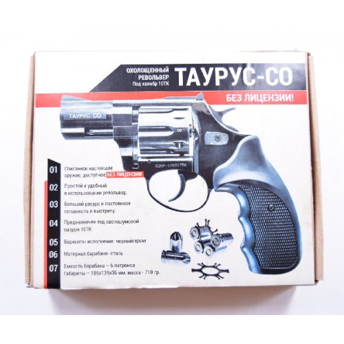 Охолощенный СХП револьвер Taurus-СО – это стреляющая холостыми светошумовыми патронами копия, в основе конструкции которой лежит легендарный револьвер Smith & Wesson. Многие производители в разных странах создавали копии и клоны этого револьвера, в том числе и компания из Бразилии Таурус, которой удалось разработать бюджетную реплику Smith & Wesson путем переработки узлов ударно-спускового механизма и снижению использования ручного труда. Taurus-СО – это модель, деактивированная в заводских условиях, которая признана одним из самых доступных по цене охолощенных револьверов на отечественном рынке. При этом низкая цена никак не сказывается на качестве данной модели.