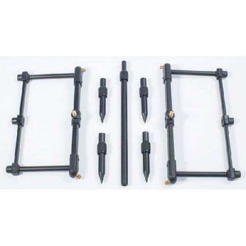 Регулируемая центральная перекладина с кулачковыми зажимами, позволяющая распололагать на родподе карповые удилища любой длины;