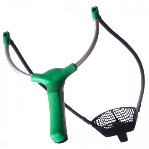 Рогатка имеет алюминиевые прочные дуги и очень удобную пластиковую рукоятку. На рогатке установлена очень эластичная резина диаметром 8 мм. Сетчатая прикормочная чашка позволяет очень точно забрасывать прикормку в нужную точку.