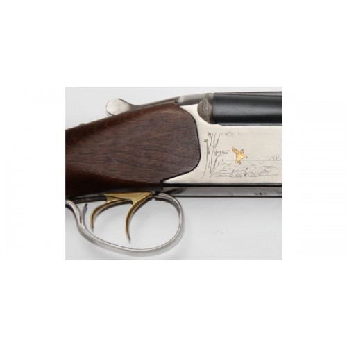 Сочетание никелированной ствольной коробки с художественной гравировкой «утки» и темного ореха подчеркивает эстетику охотничьего оружия.