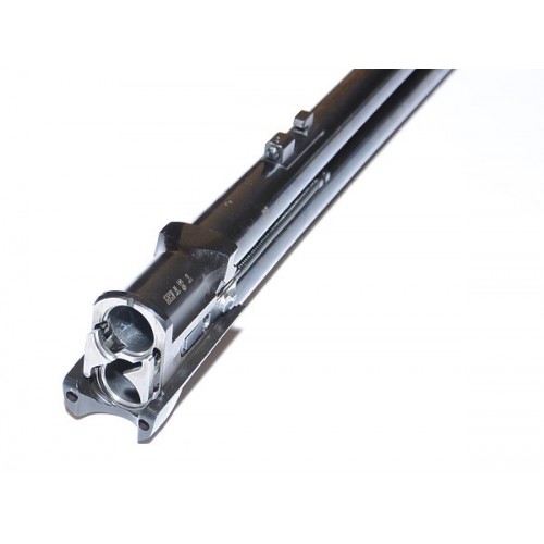 Каналы стволов хромированы. Сверловка от 18,3 до 18,4 мм способствует наилучшему построению дроби при выстреле, тем самым образую равномерную осыпь дроби. С дульной стороны установлены сменные внутренние чоки. В комплекте их 5 штук, от 0 мм (цилиндр) до 1 мм (полный чок). Сразу бросается в глаза отсутствие межствольной планки. Спайка осуществляется с дульного среза и ближе к патронникам в моноблок. Данное решение позволило облегчить вес оружия. Прицельная вентилируемая планка с антибликовыми насечками выполнена из углеволокна и располагается по всей длине блока стволов. Мушка имеет оптимальные размеры и состоит из контрастного полупрозрачного полимера.