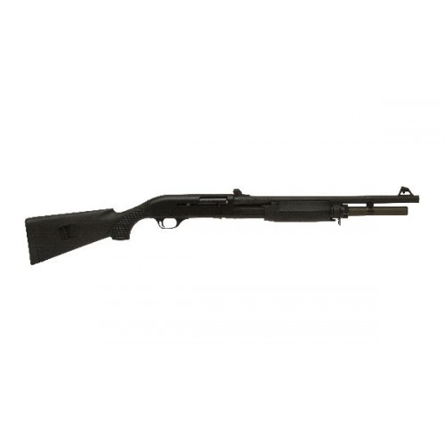 Выбор режимов "полуавтомат" - "помпа" осуществляется специальным вращающимся кольцом с насечкой, расположенным в передней части подвижного цевья. Рукоятка взведения затвора в самозарядном режиме расположена справа на затворной раме, что позволяет выполнить быстро переключение, в случае необходимости.