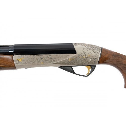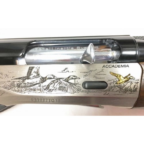 Ружье Benelli Raffaello Accademia - самозарядное ружьё Raffaello Academia с гравировкой от бренда Bottega C. Giovanelli, высокого исполнения и ограниченной серии, с номерами от 0001 до 1000. Ложа из ореха высшего сорта, приклад с устройством Progressive Comfort для снижения отдачи. Ружьё исполнено в светлых и тёмных тонах, позолота в отделке.