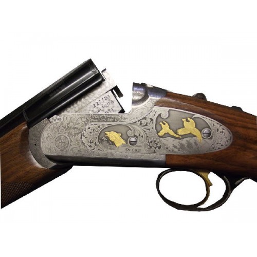 Люксовая гравировка ствольной коробки с удлиненными боковыми пластинами - позолоченные фазаны и орнаменты, золотая корона, позолоченный спусковой крючок, медальон с гербом Bettinsoli на торцевой части рукояти – все это превосходное сочетание элементов итальянского ружья DeLuxe уровня.