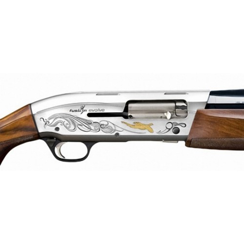 Улучшенная вентилируемая прицельная планка обеспечивает постоянство точки попадания и стабильность кучности дробовой осыпи. Уникальная система Speed Loading в совокупности с затворной задержкой позволяет максимально быстро зарядить ружье. А систем Cut Off позволяет быстро дозарядить оружие необходимым типом патрона. Отсекатель запирает магазин, прекращает подачу патронов, что способствует безопасному перемещению во время охоты при абсолютной готовности открыть огонь. Browning Fusion Evolve II Gold 12/76 создано на базе ружья Fusion Evolve II. Отличительная особенность: наличие двух золотых вставок, расположенных на никелированной ствольной коробке. Вместимость магазина ружья 5 патронов. Оснащено оригинальными чоками.