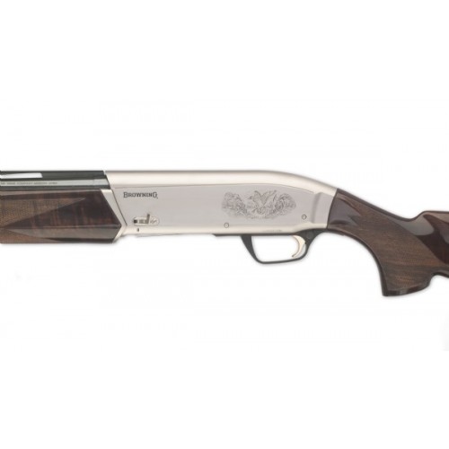Полуавтоматическое ружье для утонченных охотников: ресивер защищен никелевым покрытием и украшен гравировкой охотничьей тематики, приклад и цевье изготовлены из ореха высшей категории.