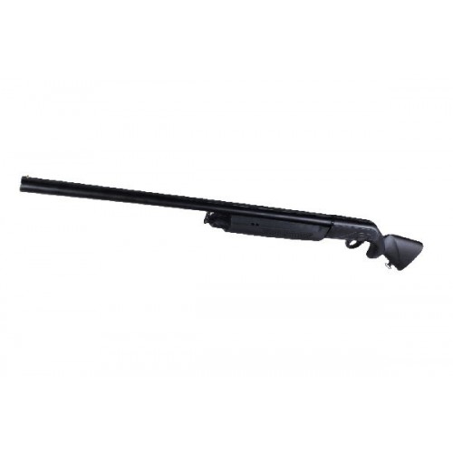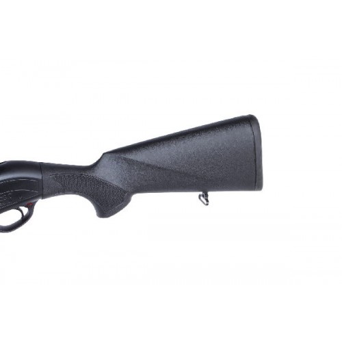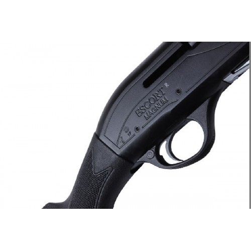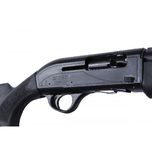 Ствол хромирован, прошел контрольные испытания на прочность, из него разрешено стрелять стальной дробью, и он выполнен из хром-никель-молибденового сплава. Ствольная коробка изготовлена из легкого, но прочного сплава и имеет защитное черное анодированное покрытие. Черный синтетический приклад и цевье со специальными насечками для лучшего контроля. Hatsan Escort PS оснащен резиновым затыльником для лучшего поглощения отдачи. Длина приклада от ствольной коробки составляет 360 мм. Погиб в пятке равен 63,5 мм, погиб в гребне - 41 мм. Предохранитель ручной кнопочный.