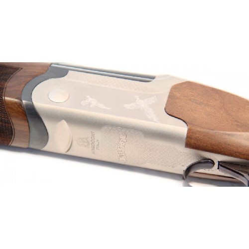 Приклад и цевье гладкоствольного ружья Marocchi выполнены из отборной ореховой древесины, для дополнительной защиты и проявления рисунка обработаны маслом. Элегантность исполнения, никелированная ствольная коробка в сочетании с лазерной гравировкой в виде летящих птиц подчеркивают неповторимый стиль итальянских ружей.