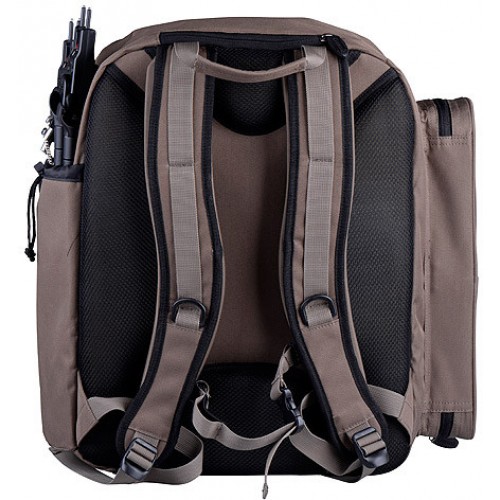 К рюкзаку можно прикрепить подсак или удилище при помощи креплений-липучек.