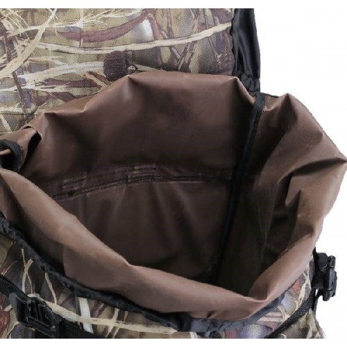 Рюкзак с усиленным стропами и боковыми стяжками корпусом. Передний карман на молнии под клапаном, боковые карманы для длинномерных предметов. Плечевые регулируемые лямки и спинка уплотнены вспененным полиэтиленом. Верх рюкзака стягивается шнуром и закрывается клапаном на защелки. Водонепроницаемое дно.