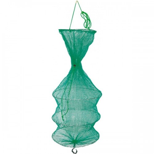 Трехкольцевой, капроновый садок с мелкой ячейкой и широкой горловиной на металлическом ободе. Утяжка между горловиной и первым кольцом надежно защищает улов. Металлические обода стабильно держат форму садка. Количество секций: 3 шт.