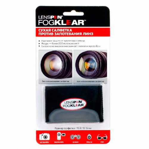 При смене температурных режимов, например при переходе с мороза в теплое помещение, оптические линзы имеют свойства запотевать. Сухая салфетка Lenspen FogKlear помогает справиться с последствиями этого явления.