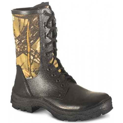 Облегченные комбинированные сапоги из кожи и ткани с водоотталкивающим покрытием для охоты и рыбалки. Сапоги выполнены с применением натуральной кожи тулип и ткани Oxford PU . Подклад сделан из хлопка. Подошва ТЭП - износостойкая, с высокими показателями противоскольжения. Для повышения прочности обуви и защиты ног от случайных ударов в носовой и пяточной части вклеены усиливающие элементы. При изготовлении применяются высокопрочные нитки Gutermann .