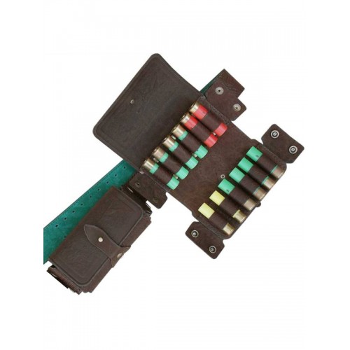Изготовлены в традиционной форме из натуральной кожи. Надежно держат патроны в лузах. Позволяют загрузить патроны снаряженные в гильзы длиной от 70мм. до 89мм. Оснащены клапанами для защиты патронов от непогоды. В производстве используется итальянская фурнитура, которая практически не дает бликов. Раскрой производится на специальном оборудовании, что гарантирует высокое качество. Изделие украшено миниатюрами охотничьей тематики, нанесенными методом горячего тиснения.