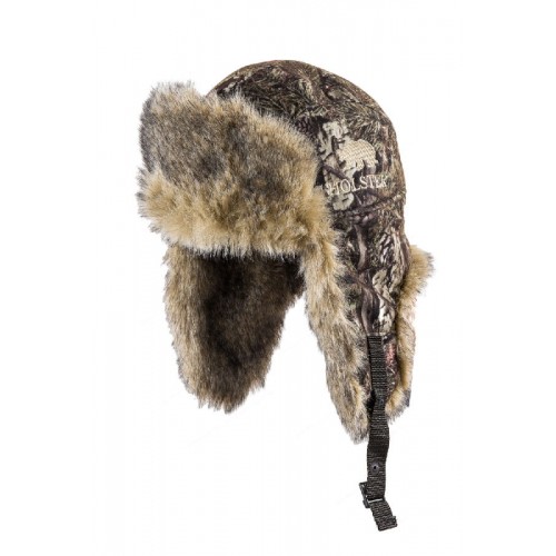 Утепленная шапка-ушанка Хольстер Зеленые шишки удачно дополнит гардероб любого охотника или рыбака. Верх шапки выполнен из аловы, отделка - искусственный мех. По бокам шапки выполнены специальные отверстия для улучшения слышимости, когда "уши" опущены. Температурный режим: от -15С до -45С.