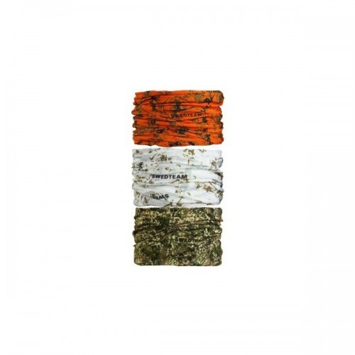 Шарф Swedteam Multifunctional - многоцелевая модель, может использоваться в виде шарфа, банданы, повязки, маски. Поставляется в наборе из трех изделий разного цвета, подходящего под различные условия. Шарфы изготовлены из высококачественного полиэстера, обеспечивающего большой комфорт для кожи и отличную воздухопроницаемость. Изделие обладает хорошей защитой от ветра, холода и пыли. Трехцветный - оранжевый, белый и зелёный камуфляж.