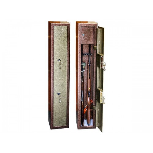 ОШ-1 — оружейный шкаф на два ружья высотой до 1220 мм и боеприпасы к ним. Удовлетворяет всем требованиям МВД к хранению оружия физическими и юридическими лицами. Взломостойкие качества подтверждены сертификатом соответствия ГОСТ Р 50862-2005. Стальной корпус имеет сварную конструкцию. Толщина боковых стенок — 2 мм, двери — 3 мм. Комплектуется двумя сертифицированными ключевыми замками — II класс, сделаны в России. Внутри — запираемое на ключ патронное отделение и два пластиковых ложемента под цевье. За трейзером есть поднутре́ние (пространство до тыльной стенки), достаточное для того чтобы ставить стволы на всю высоту. Внизу — ковролиновый коврик. Поверхность корпуса имеет износостойкое покрытие порошкового типа. Цветовое исполнение: медно-бронзовый антик. Предусмотрена возможность анкерного крепления к стене.