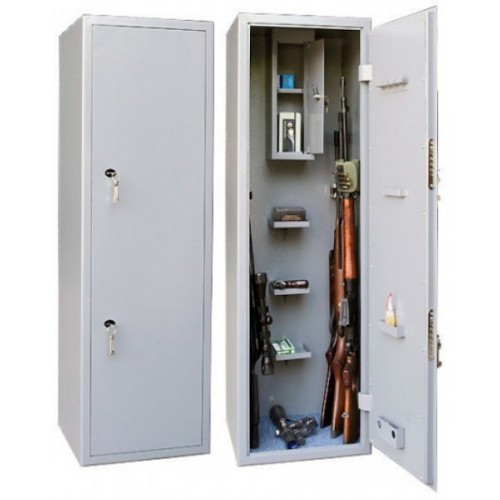 Сейф односекционный, на 6 стволов оснащен съемными полками и отделением под патроны.