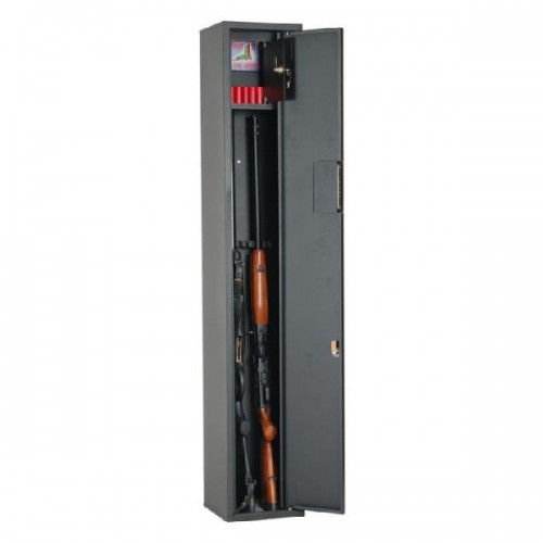 Шкаф односекционный, на 2 ствола, оснащен отделением под патроны. Ложементы — пластик. В дверь установлены 1 замок типа «Cam-Lock» и 1 ключевой 8-ми сувальдный замок ЗАО «Про-Сам» г. Рязань или аналогичный замок другого производителя.
