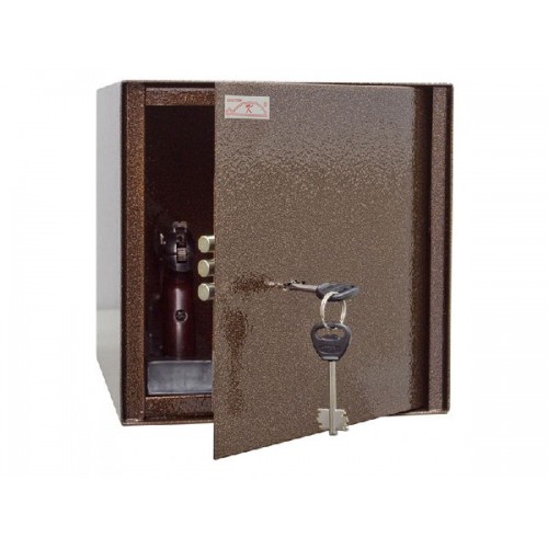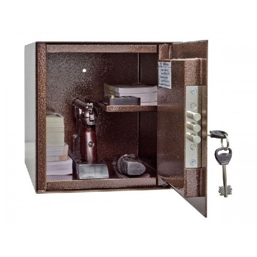 Шкаф для хранения 1-го пистолета. Полка. Сталь 2 мм. Шкаф оборудован ключевым замком высокой секретности. На задней стенке сейфа есть два отверстия для крепления к стене. Шкаф окрашен порошковой краской сочетающей прекрасный внешний вид и устойчивость к царапинам и потертостям. Шкаф удовлетворяет всем требованиям МВД к хранению боевого, гражданского и служебного оружия.