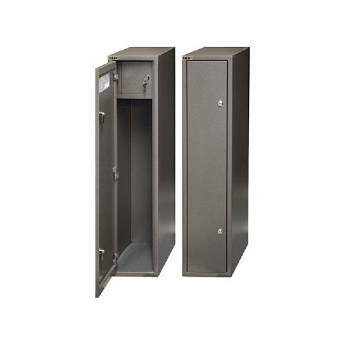Сейф для оружия предназначен для размещения одного охотничьего оружия длиной до 950 мм. Для хранения патронов используется патронное отделение, которое закрывается на отдельный ключ. Произведен сейф в России на бельгийском оборудовании. Дверь и корпус сейфа выполнен из прокатного металла толщиной 1.8-2.0 мм. Двухключевой замок почтового типа. Покраска сейфа порошковая.