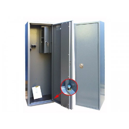 Узкий вместительный шкаф для хранения двух стволов. Внешнее антикоррозийное порошковое покрытие. Замок двух-ключевой (ключи 2 шт. в комплекте). Сейф Oldi №5а изготовлен из металла толщиной 1.0-1.5 мм. Внутри имеется боковой трейзер для хранения принадлежностей и крючок, пол сейфа закрыт ковриком. Безопасность от вмешательства посторонних лиц обеспечивает замок CAM. Все серийно выпускаемые сейфы Oldi имеют сертификат соответствия класс H0 устойчивости к взлому.