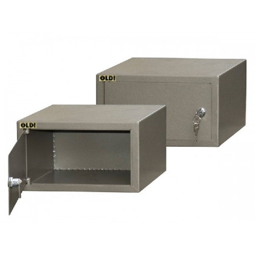 Компактный сейф компании Oldi для хранения пистолета. Производится в России на современном бельгийском оборудовании. Внешне сейф покрыт порошковой эмалью, которая обеспечивает защиту от мелких потертостей. Замок используется ключевой (почтового типа). В комплекте поставляется два ключа. Подходит для хранения пистолетов или документов. Толщина стали 1-2 мм. Вместимость 1-2 ствола. Сейф соответствует требованием МВД. Крепление к полу и/или к стене.