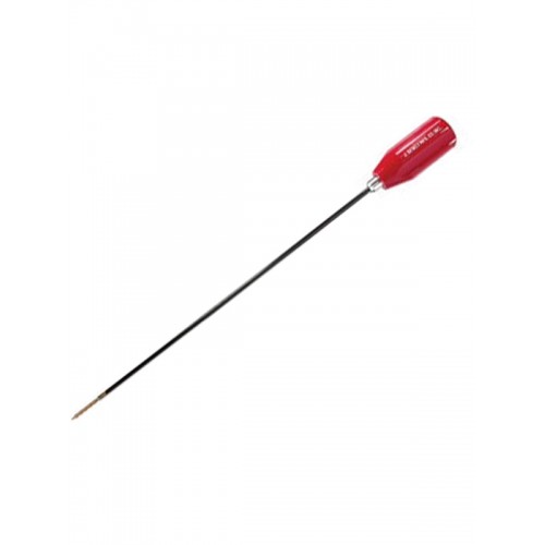Шомпол Dewey изготовлен из целикового стального прута. Шомпол максимально жесткий, он не гнется, и чистка происходит легче и эффективнее. Рукоять шомпола оснащена подшипником, чтобы во время хода шомпола по стволу ершик проворачивался по нарезам. Пруток покрывают прочнейшей полимерной нейлоновой оболочкой, исключающей фактор царапания даже при прогибе шомпола внутри канала ствола во время интенсивной чистки. На прутке нарезают резьбу под вишеры и ерши, и монтируют тело шомпола в знаменитой красной рукоятке Dewey, используя подшипники качения. Шомпол Dewey .27 калибра, односекционный (т.е. состоит из цельного куска метала, что гарантирует сохранность нарезов на пульном входе в отличии от сборных шомполов), с подшипником, в нейлоновой оплетке, резьба 8/32 внутренняя, в комплекте насадка для шомпола Dewey.27 калибра, алюминий.