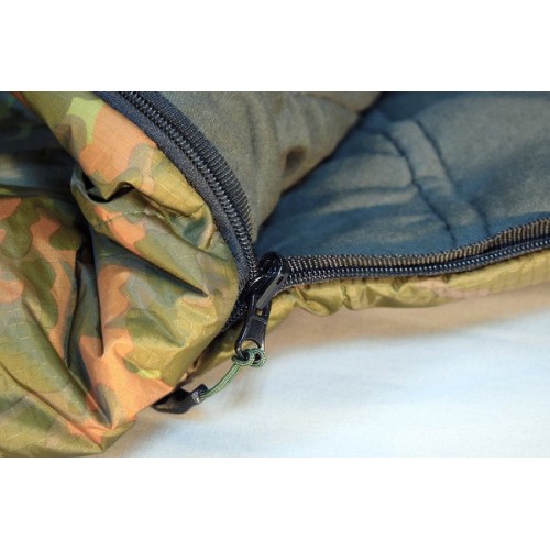 Оснащен двумя L-образными независимыми молниями для правильного положения капюшонов при состегивании двух спальников (у многих других производителей при состегивании оба капюшона получались с одной стороны, что доставляло дискомфорт).