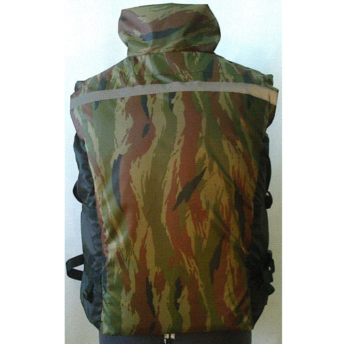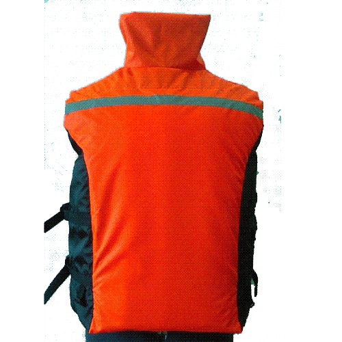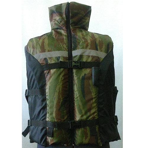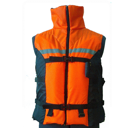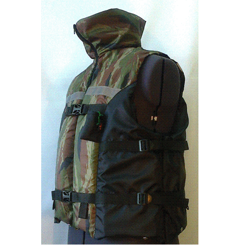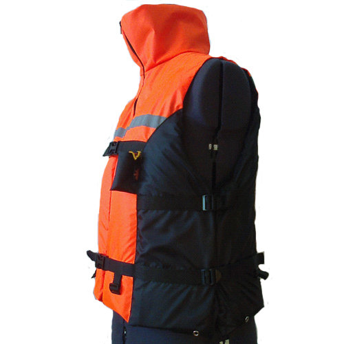 Спасательный жилет выполнен из влагозащитной ткани Oxford - 240. Застежка изделия - молния и два фастекса, с возможностью регулировки размера жилета по ширине. Наполнитель жилета в передней части расположен в двух секциях, на спине - в трех, что обеспечивает комфорт и прилегание жилета по фигуре. Воротник жилета выполняет декоративную функцию. По низу изделия имеется 4 пряжки для крепления пахового ремня. В боковом шве - регулировочная система из двух пряжек для изменения ширины жилета.