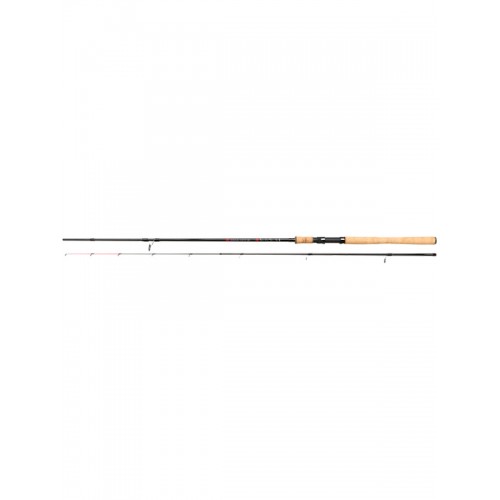 Жесткий углепластиковый спиннинг с быстрым строем. Верхнее колено имеет толстую монолитную вставку, отлично регистрирует падение приманки при ступенчатой проводке и легкие поклевки. Кончик покрашен в красный цвет для облегчения визуальной регистрации поклевки. Бланк быстро набирает мощность и при поимке рыбы весь включается в борьбу. Стык колен типа «комель в хлыст». Кольца SiC. Первое кольцо – на трехточечной опоре, остальные – на V – образных. Есть скоба для приманок. Прямая пробковая ручка, классический катушкодержатель. Плотный нейлоновый чехол.