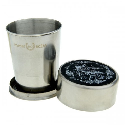 Стакан складной - это практичная, полезная и универсальная деталь экипировки в путешествии, на охоте, экспедиции, туристическом походе или на прогулке. Легкая и компактная конструкция колец из нержавеющей стали позволяет легко уместить его в кармане. Размер: 6,5х6.5х3 см