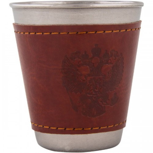 Стопка в кожаном чехле.Стопка изготовлена из нержавеющей стали и покрыта искусственной кожей с рисунком герба РФ.