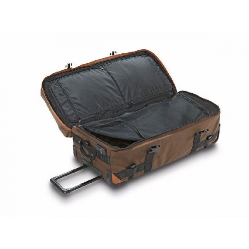Имея все функциональные особенности, необходимые для путешествий (выдвижную ручку, замок, колеса а так же несколько вместительных отделений, кроме основного и т.д), чемодан так же пригодиться и охотнику благодаря специальным креплениям для ружейного кейса.