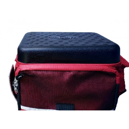 Сумка ящик Flambeau выполнена в красном цвете в сочетании с черной фурнитурой и белыми вставками. Изготовлена из прочного синтетического материала, швы надежно прострочены.
