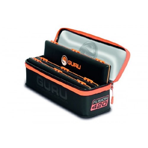 Guru Fusion – серия специализированных коробок от британского производителя, разработанные специально для хранения фидерной оснастки и не только. Вся серия изготавливается из 0,8 мм EVA, материала обладающего целым рядом преимуществ. Тут и водостойкость и прочность и легкая чистка, а так же устойчивость к вездесущим проколам. Коробки закрываются с помощью водостойкой молнии на крышку достойную отдельного внимания. Она изготовлена из тонированного пластика, который защищает содержимое от воздействий UV лучей. Наживки, скрытые под такой защитой, сохранят свою свежесть гораздо дольше.