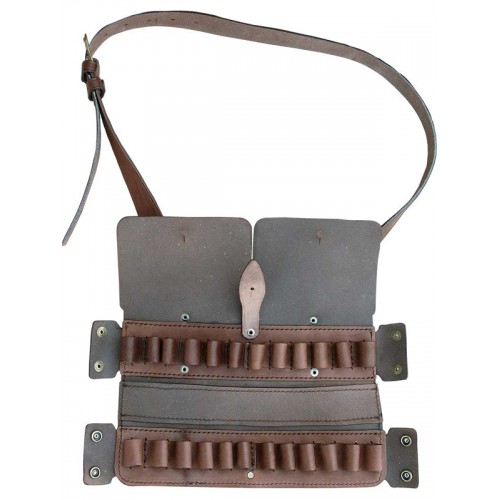 Сумка К-16/12 24 патрона изготовлена в традиционной форме из натуральной кожи. Надежно держит 24 патрона в лузах. Позволяет загрузить патроны снаряженные в гильзы длиной от 70мм. до 89мм. Оснащена клапанами для защиты патронов от непогоды. В производстве используется итальянская фурнитура, которая практически не дает бликов. Раскрой производится на специальном оборудовании, что гарантирует высокое качество. Изделие украшено миниатюрами охотничьей тематики, нанесенными методом горячего тиснения.