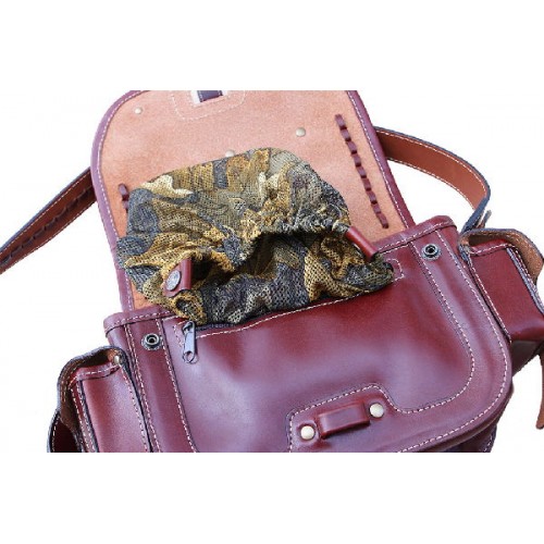 Сумка охотника ХСН из серии "VIP", традиционной формы, с двумя отделениями для снаряжения и сетчатым мешком под дичь. Фурнитура итальянского производства не бликует и не звенит. Кожа, из которой сделана сумка, не боится воздействия влаги, ружейного масла и солнечных лучей.