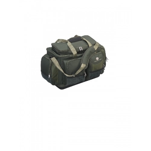 Вместительная сумка английского качества фирмы JRC. Сделана из материала 600D полиэстер, с нашивкой на дно EVA. Для увеличения объёма можно расстегнуть молнию, которая идёт снизу по периметру. Есть два передних и два боковых кармана. Размер сумки 67x35x(46-53) см.