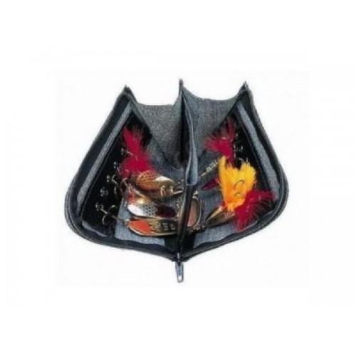Очень удобная сумка-кошелек для блесен сделана из прочной ткани. Позволяет с комфортом хранить блесны, надежно закрепленные в нескольких отделениях.
